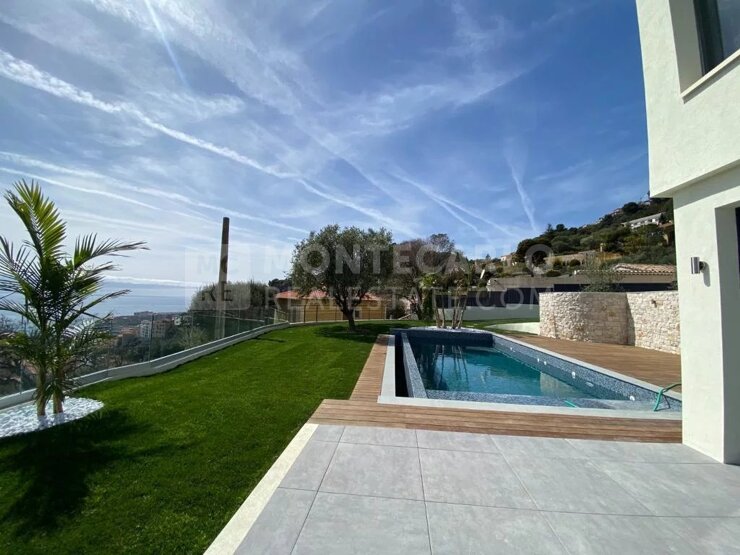 Villa contemporaine située à Beausoleil offrant un cadre paisible et une vue imprenable sur la mer et la Principauté de Monaco.