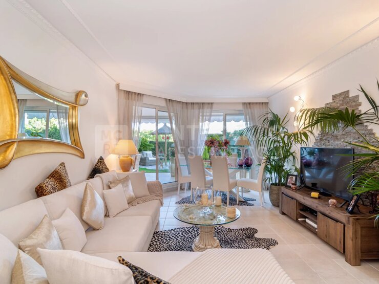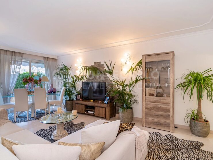 L'appartement s'étend sur un jardin de 80 m2, avec une terrasse de 28 m2, tous deux soigneusement aménagés et meublés. A cela s'ajoute une vue sur la mer et Monaco et les parties communes de l'immeuble qui s'harmonisent parfaitement avec le style de la maison.