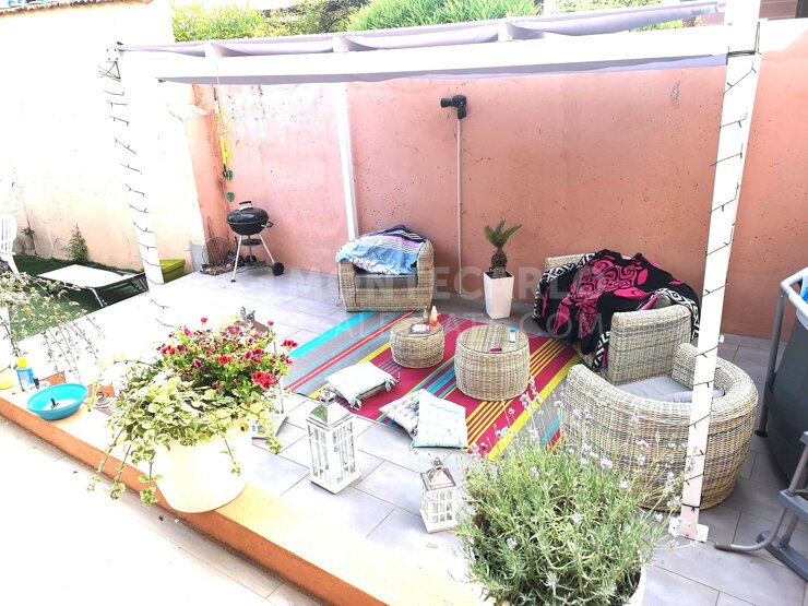 D'une superficie habitable de 75 m2, il est composé d'une entrée, séjour/salle-à-manger donnant sur la terrasse et le jardin, cuisine équipée ouverte, 3 chambres dont deux avec dressing intégré, une salle-de-douche avec toilette.