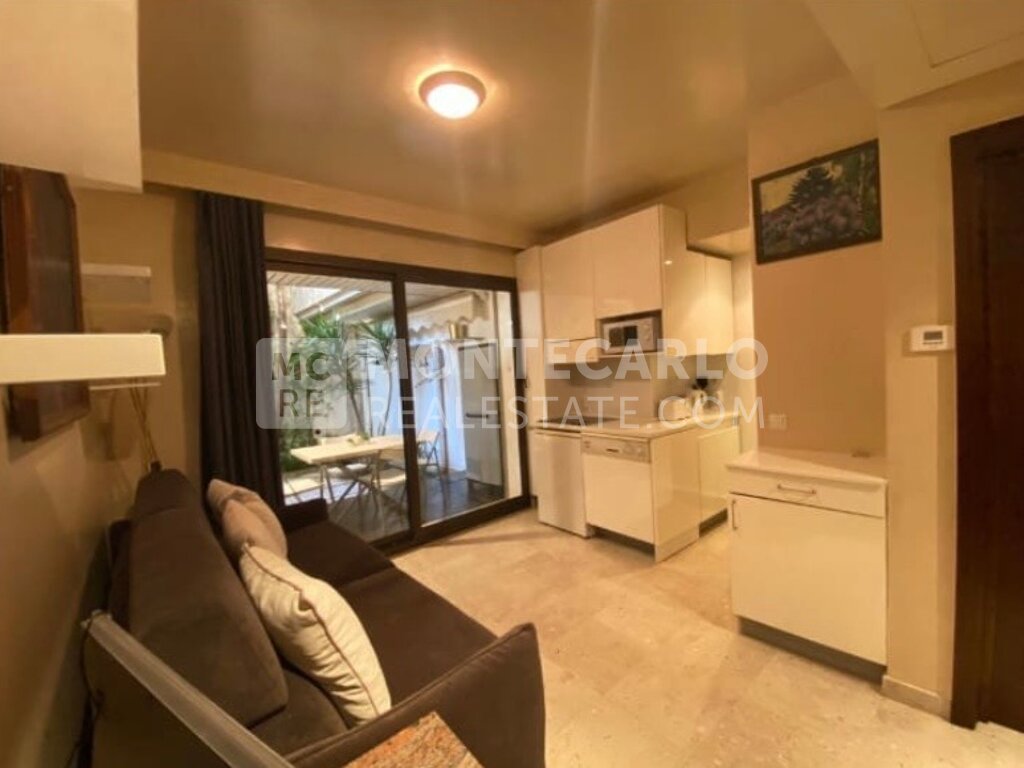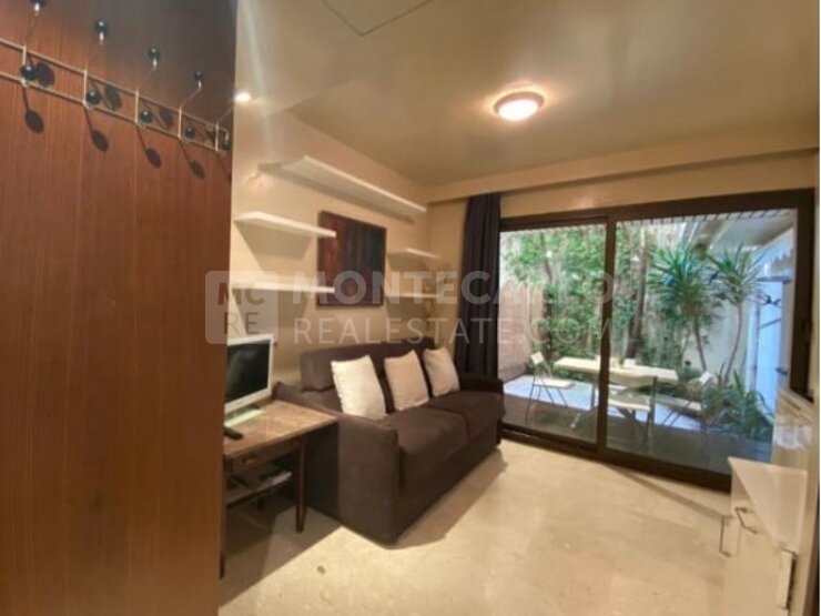 Atelier rénové avec jardin privé clôturé et terrasse en bois, situé dans une résidence de luxe et tranquille. Appartement entièrement meublé et équipé, très lumineux, avec une grande salle de bain en marbre (baignoire et douche), climatisation réversible, machine à laver, lave-vaisselle, stores électriques occultants et grande cave. Résidence avec concierge et vidéosurveillance. Proche des ascenseurs publics, avec un accès rapide à Port Hercule et Fontvieille.