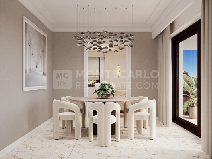Idéalement situé au cœur du prestigieux Carré d'Or, dans une résidence de standing avec concierge, cet élégant appartement de 4 pièces offre une vue à couper le souffle sur le Casino de Monte-Carlo et la mer méditerranée.