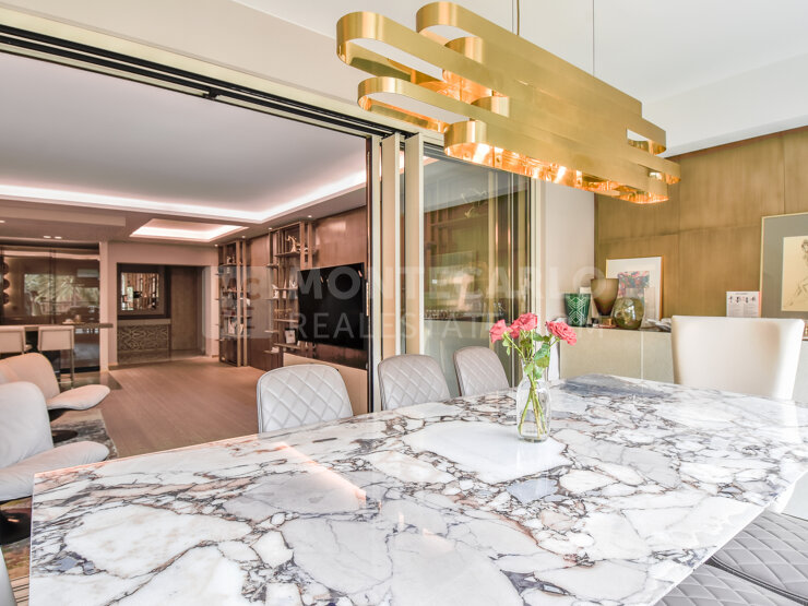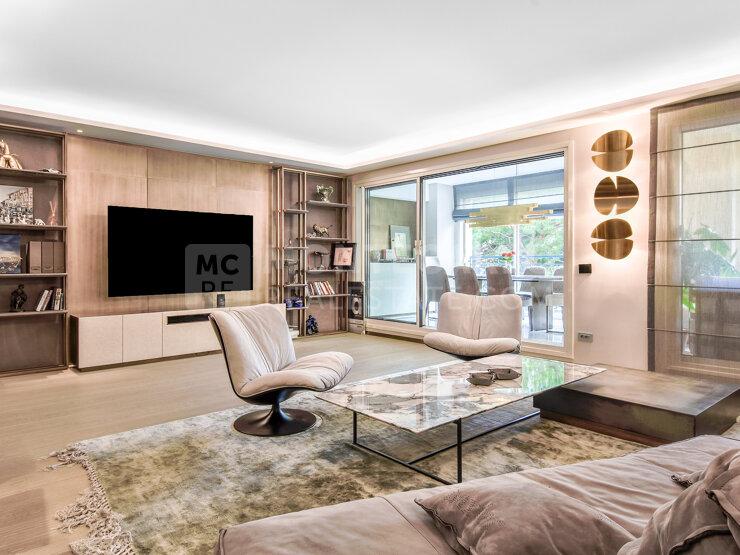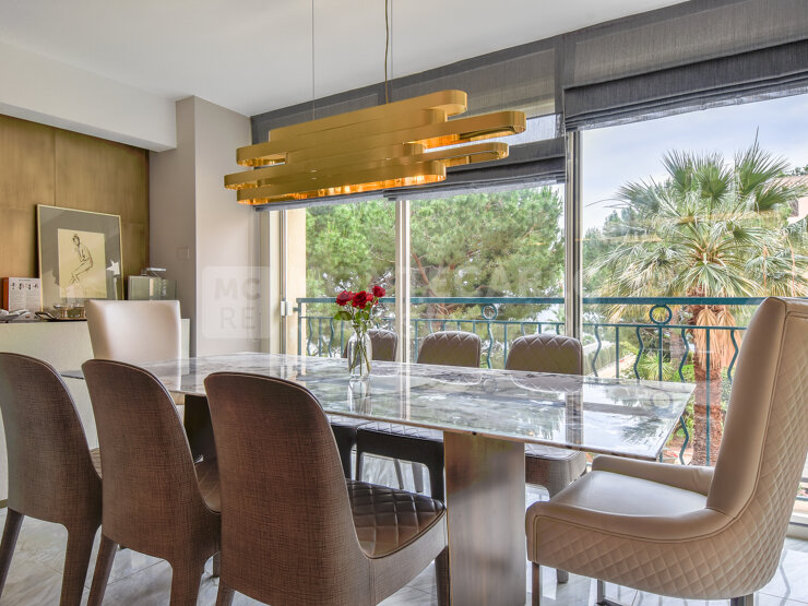 Situé dans le quartier de Fontvieille, dans une belle résidence, élégant appartement de 5 pièces, entièrement rénové avec des matériaux de haute qualité et des prestations luxueuses.