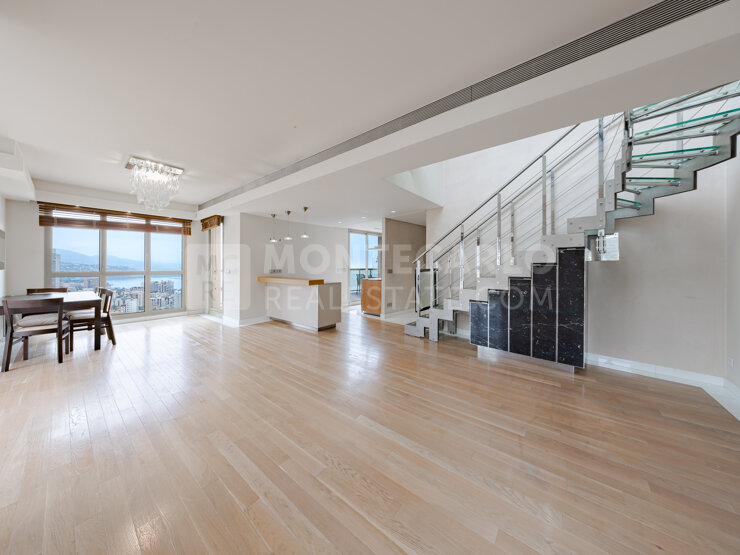 Situé aux deux derniers étages de la résidence Villa Les Pins, dans le quartier résidentiel et paisible du Moneghetti, ce duplex penthouse d'exception déploie 250 m² total. Depuis son toit-terrasse privé de 157 m², la vue panoramique embrasse toute la Principauté, le port, le Rocher et les côtes italiennes. Un panorama rare, un art de vivre unique, loin de l'agitation du centre tout en restant à deux pas de ses attraits