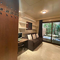 Dieses möblierte Studio eignet sich für gemischte Nutzung. Es befindet sich in einer ruhigen Wohngegend, in der Nähe des Parc Princesse Antoinette, innerhalb einer prestigeträchtigen Residenz mit Sicherheitsdienst.