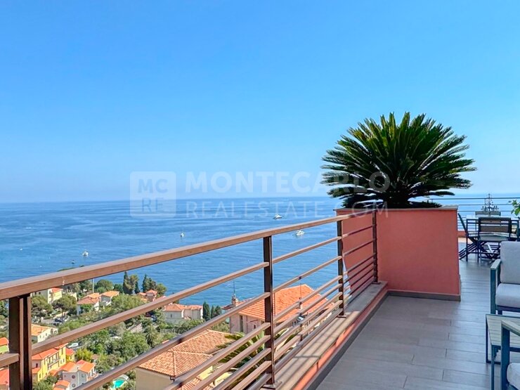 In Roquebrune-Cap-Martin, in a luxury residence equipped with a swimming pool and a solarium, discover this magnificent 3-room duplex offering a panoramic view of the sea and Cap Martin.