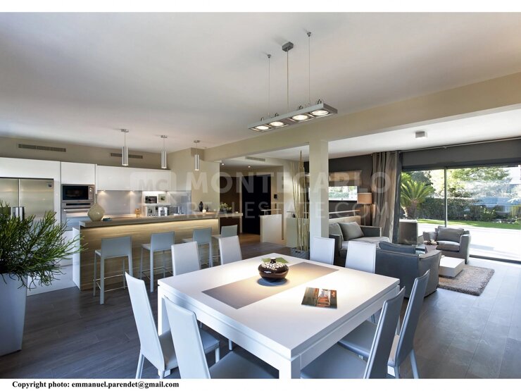 Questa sublime villa, completamente ristrutturata con materiali di alta qualità in stile moderno, offre un'esperienza di vita lussuosa a Roquebrune-Cap-Martin, a pochi passi da Monaco.