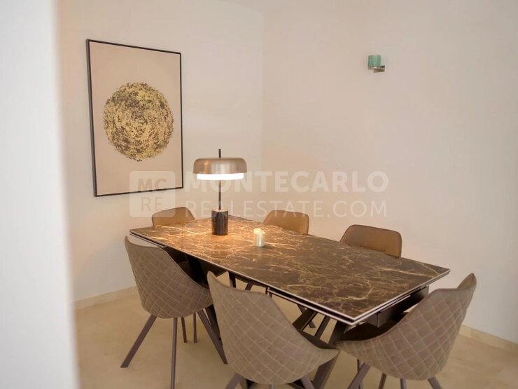 Con una superficie di 180 m² è composto da un elegante ingresso, un ampio soggiorno con grande divano comodo, televisione e una sala da pranzo che può ospitare 6 persone, una moderna cucina a vista completamente attrezzata, 3 camere da letto dotate di ampi letti matrimoniali, due bagni e due bagni per gli ospiti.